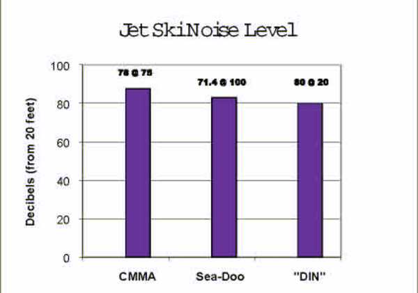 saying that at a distance of 20 feet jet skis produce sound levels up