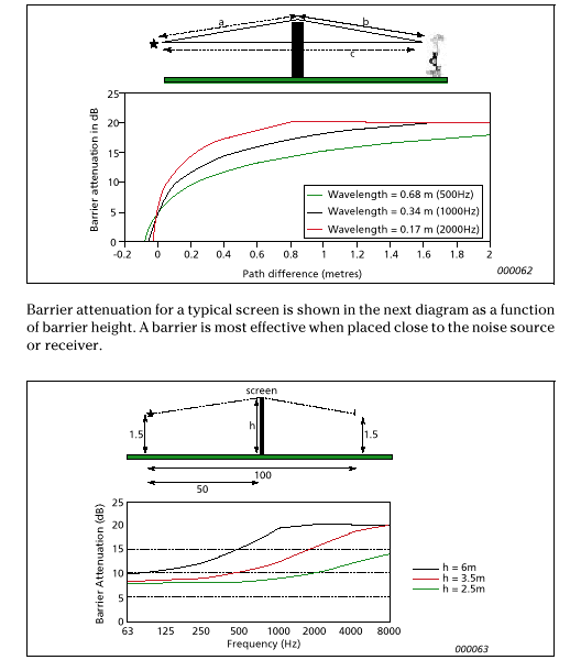 Barriers The noise reduction caused by Abarrier depends on two factors: