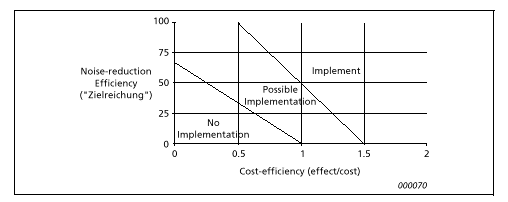 Whether a noise reduction activity will be implemented or not depends on its cost-efficiency and its ability to reduce noise to below the statutory limits