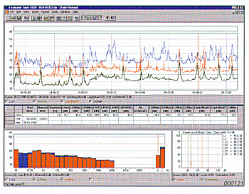 Getting an AverageAssessing a fluctuating noise level means getting a value for a level that is, in simple terms, the average level. Eyeball-averaging using a moving-coil instrument is a method of the past. The LA50, i.e., the level exceeded for 50% of the measurement time, is now only rarely used as an average value. The "equivalent continuous sound level", the Leq , is known across the globe as the essential averaged parameter. The Leq is the level that, had it been a steady level during the measurement period, would represent the amount of energy present in the measured, fluctuating sound pressure level. The Leq is measured directly with an integrating sound level meter. Leq is a measure of the averaged energy in a varying sound level. It is not a direct measure of annoyance. Extensive research, however, has shown the Leq to correlate well with annoyance. It is obvious, though, that a noise level acceptable on a Wednesday afternoon may be distressing early on Sunday. Corrections for time of day may, therefore, be applied. Using StatisticsAn analysis of the statistical distributions of sound levels is a useful tool when assessing noise. The analysis not only provides useful information about the variability of noise levels, but is also prominent in many standards as the basis for assessing background noise. For example, L90, the level exceeded for 90% of the measurement time, is used as an indicator of background noise levels while L 10 or L5 are sometimes used to indicate the level of noise events.7 Day or Two Hour Measurements?Measuring noise for the complete reference time interval is ideal. This could range from two hour to week-long measurements. Longer periods such as month and year-long measurements are sometimes used for good reason. In such cases, a log of values obtained every second, minute or quarter of an hour is used to obtain a time history of noise levels. However, long-term measurements can be expensive and difficult to manage. Assessments are often based on taking measurements of representative samples and piecing together the results into a complete overview. Working out a full evaluation from representative samples is indeed a daunting task. State-of-the-art software can automate the process providing accurate and reliable results efficiently and cost-effectively. However, if regulations impose absolute limits on maximum levels, a continuous monitoring of sound levels is necessary. |