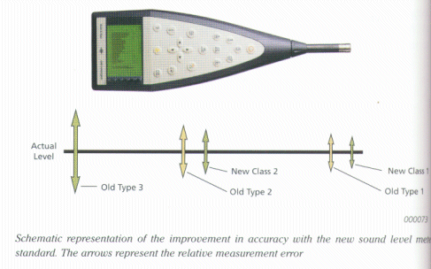 Schematic representation of the improvement in accuracy with the new sound level meter standard. The arrows represent the relative measurement error