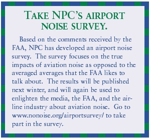 The Noise Pollution Clearinghouse is looking for airport noise activists to help publicize this report in local communities. NPC will make about a 1,000 copies of the report available to local activists, and it will also be available on our website at www.nonoise.org/library/failure.htm. The publication date is set for April. NPC will coordinate national media exposure and hopefully local airport activists will also gain local exposure. To sign up to receive an advance copy of the report so you can be part of the media effort, go to the NPC website (www.nonoise.org/failure/) and fill out the form or call 1-888-200-8332. ![]() Aviation