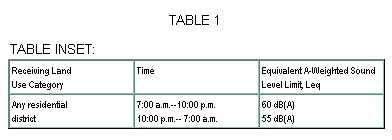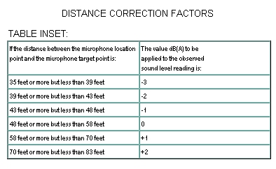 and the microphone target point is other than 50 feet, the maximum sound level established by table A shall be corrected as follows: