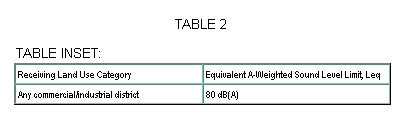 No person shall operate or cause to be operated on private property within a commercial/light industrial district any source of sound in such a manner as to create a sound level which exceeds the equivalent A-weighted sound level (Leq) limits set forth in table 2 when measured at a distance of 25 feet from the structure wherein the source of sound is located, or at the real property boundary of the property whereon the sound is generated, whichever is greatest. A measurement period shall not be less than ten minutes.