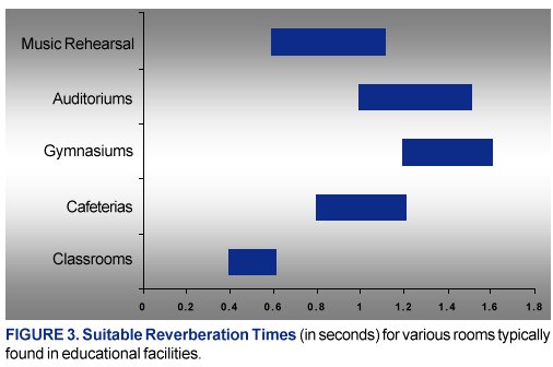 For those interested in calculating the RT of an existing classroom or estimating how much absorption is necessary, the Appendix includes examples and a table of absorption coefficients for some common materials.