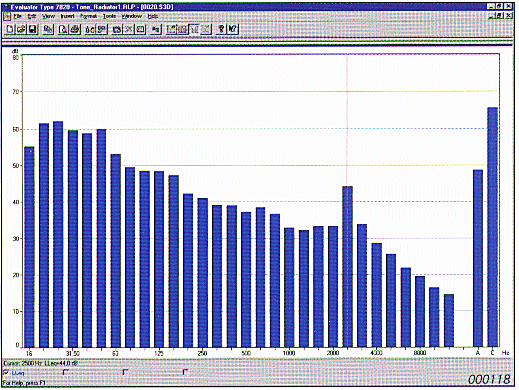 Tones in NoiseAnnoying tones are created in two ways: Machinery with rotating parts such as motors, gearboxes, fans and pumps often create tones. Unbalance or repeated impacts cause vibration that, transmitted through surfaces into the air, can be heard as tones. Pulsating flows of liquids or gases can also create tones, caused by combustion processes or flow restrictions. Tones can be identified subjectively by listening, or objectively using frequency analysis. The audibility is then calculated by comparing the tone level to the level of the surrounding spectral components. The duration of the tone should also be documented.Low Frequency NoiseLow frequency noise has significant acoustic energy in the frequency range 8 to 100 Hz. Noise of this kind is typical for large diesel engines in trains, ships, and power plants and, since the noise is hard to muffle and spreads easily in all directions, it can be heard for miles. Low frequency noise is more annoying than would be expected from the A-weighted sound pressure level. The difference between the A-weighted and C-weighted level can indicate whether there is a low frequency problem. To calculate the audibility of low frequency components in the noise, the spectrum is measured and compared to the threshold of hearing. Infrasound has a spectrum with significant components below 20 Hz. We perceive it not as sound but rather as pressure. The assessment of infrasound is still experimental, and is presently not covered by international standards. |