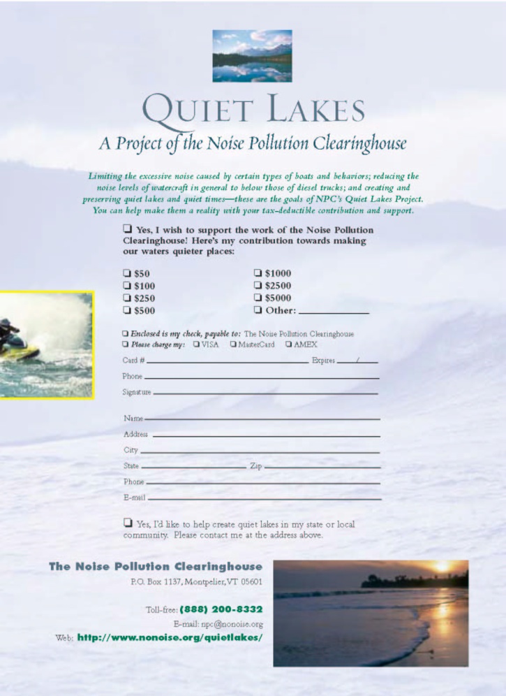 You can contribute to Peace and Quiet on our waters by contributing to the Noise Pollution Clearinghouse.